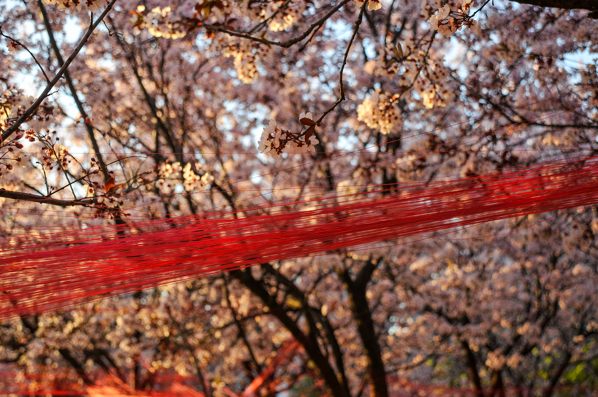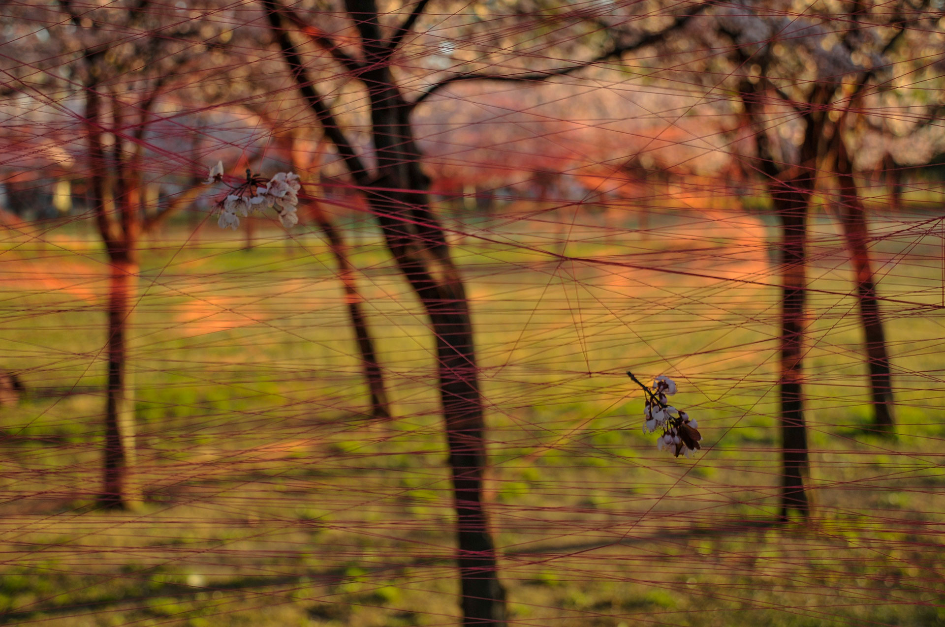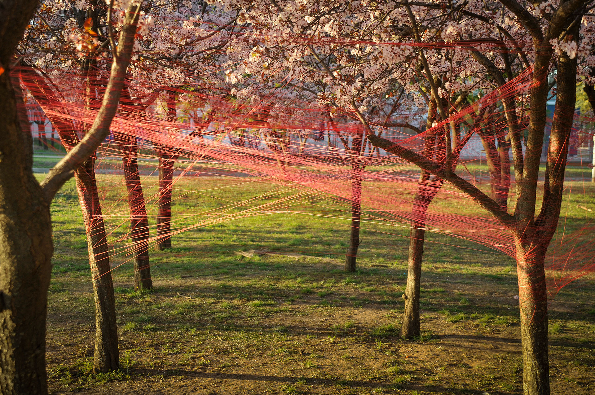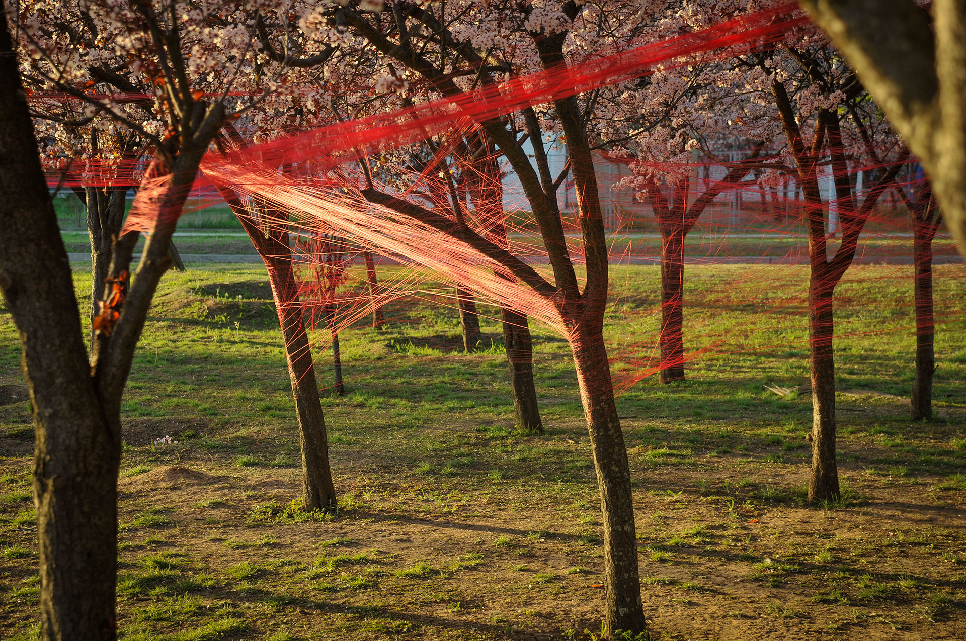 Utilizo hilos y la naturaleza como un medio perceptible a través de los sentidos para crear un espacio para la actividad y contemplación que apuntan a contextos mayores. Ritualización individual e íntima que puede comenzar una y otra vez, proceso íntegro conectado a un orden mayor.